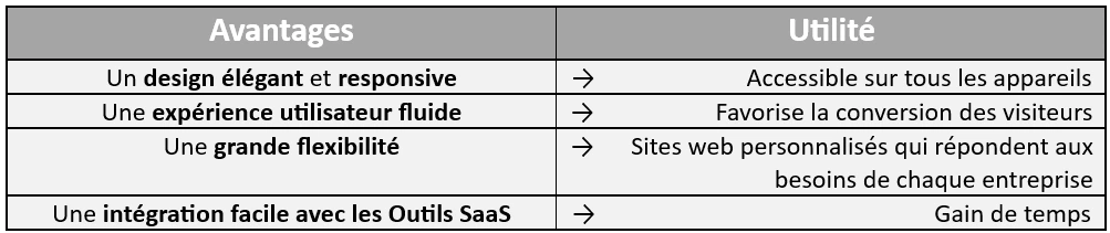 Webflow offers several advantages for SaaS websites, which we present in the table below: