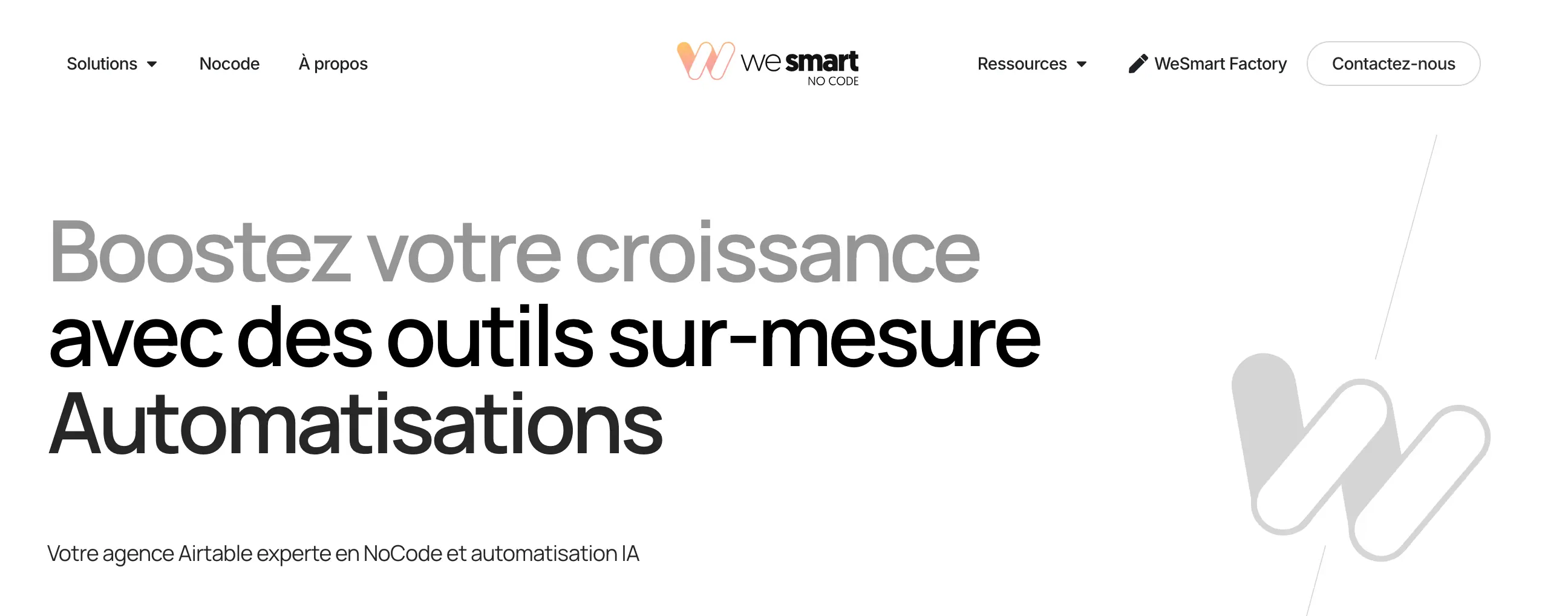 WeSmart No-Code est une agence web française spécialisée dans le no-code et la création de sites sous Webflow. L’équipe combine une vraie maîtrise technique et une vision UX/design réfléchie pour livrer des sites modernes, rapides et parfaitement calibrés pour le business. Dès l’analyse du besoin jusqu’à la mise en ligne, WeSmart No-Code s’attache à produire des interfaces intuitives, fluides et optimisées. Leur force réside autant dans la qualité visuelle que dans la performance et la clarté du code no-code.