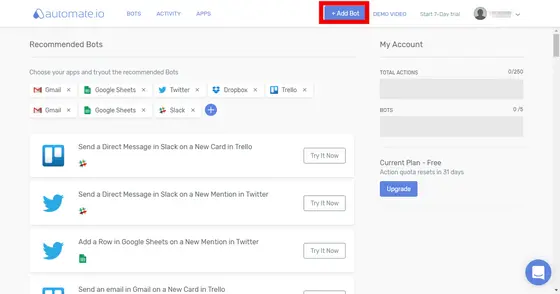 Automate.io propose une offre gratuite limitée qui permet de créer jusqu’à 250 actions par mois et connecte jusqu’à 5 bots, idéale pour des tests ou des besoins très basiques.