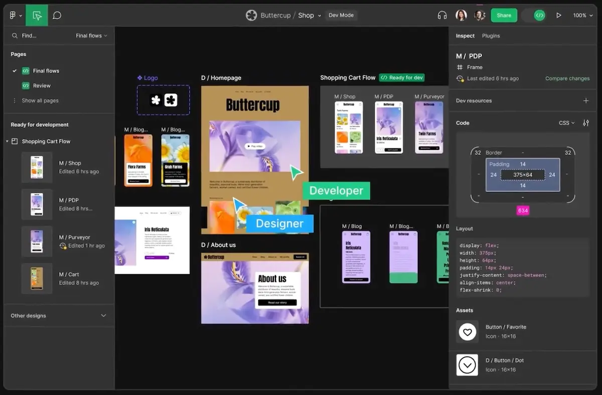 La première chose qui m'a bluffé avec Figma, c'est sa capacité à transformer la collaboration. Fini le ping-pong des fichiers et les versions obsolètes ! Chez Easy Web, nos designers peuvent bosser en temps réel sur le même fichier, voir les commentaires de nos clients apparaître instantanément, et même nos développeurs peuvent inspecter le code directement. Cette fluidité a radicalement changé notre façon de travailler, réduisant le temps d'approbation et boostant notre efficacité d'équipe comme jamais.