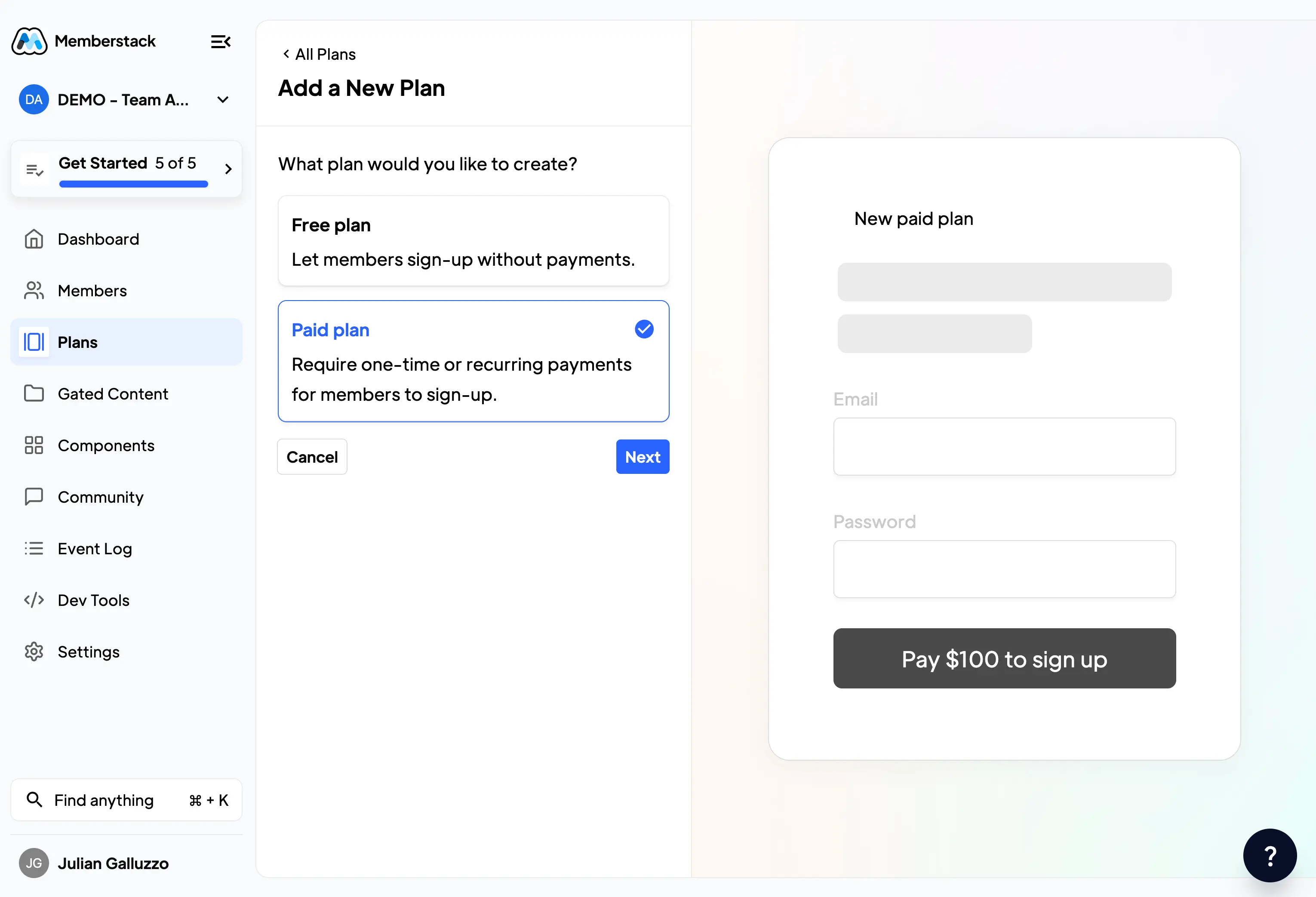 Memberstack propose plusieurs formules adaptées à différents profils :