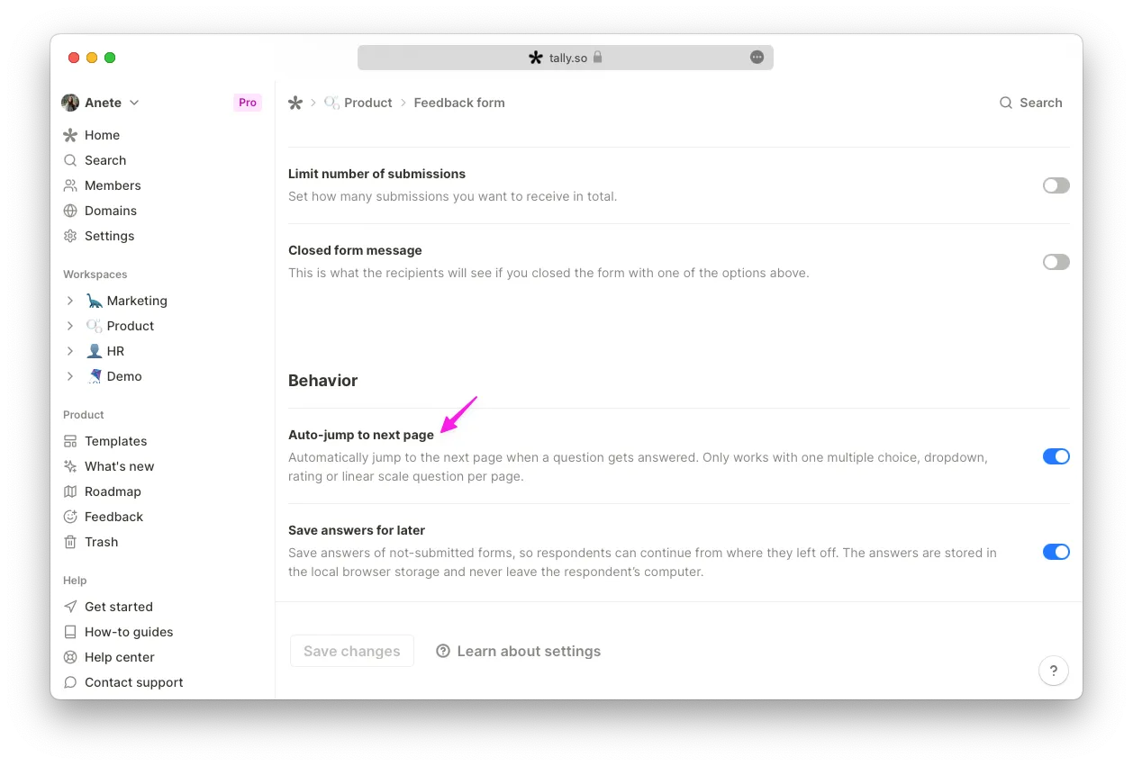 Tally Forms permet une certaine flexibilité pour exporter les données sous différents formats simples, facilitant ainsi la migration si vous décidez de changer d’outil.