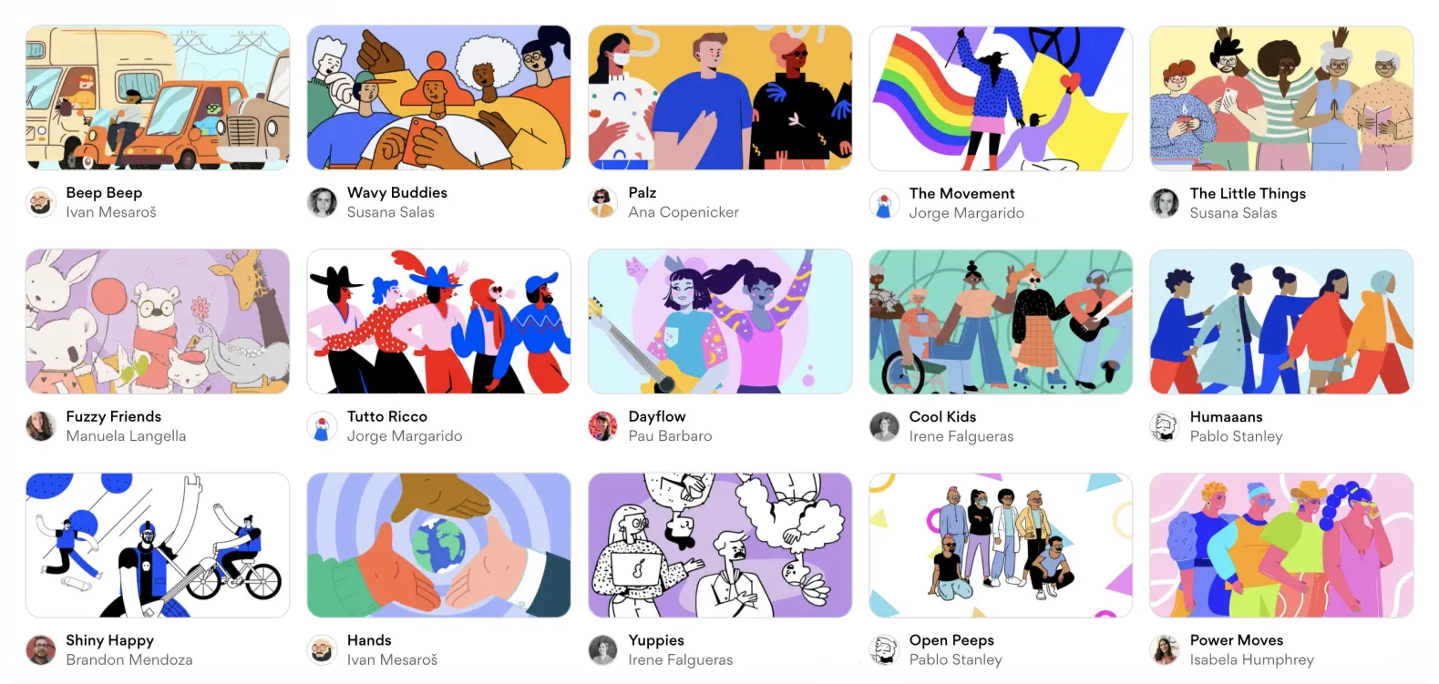 Ensuite, la richesse de la bibliothèque, avec des collections signées par différents artistes, est un atout majeur. Fini le temps passé à chercher désespérément "LA" bonne illustration dans des banques d'images souvent limitées. Que vous ayez besoin d'un style corporate épuré ou de quelque chose de plus fantaisiste pour une app, Blush propose une diversité de styles qui s'adapte à presque toutes les ambiances. C'est un gain de temps considérable et une source d'inspiration constante pour nos équipes.