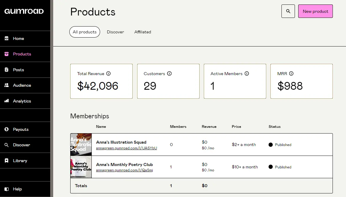 Autre point fort de Gumroad : son système intégré d’abonnements et de paiement récurrent, idéal pour ceux qui veulent monétiser des contenus en continu sans gestion technique fatigante.