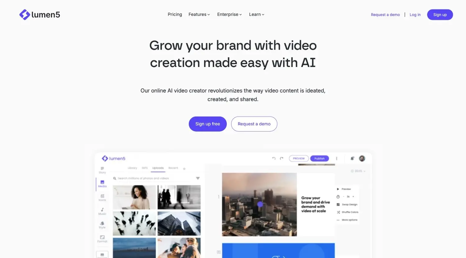 Lumen5 propose une formule gratuite avec des fonctionnalités de base, adaptée aux utilisateurs souhaitant tester l’outil et produire des vidéos simples. Cette version impose un watermark et limite les options de personnalisation ainsi que l’accès à la bibliothèque de médias.