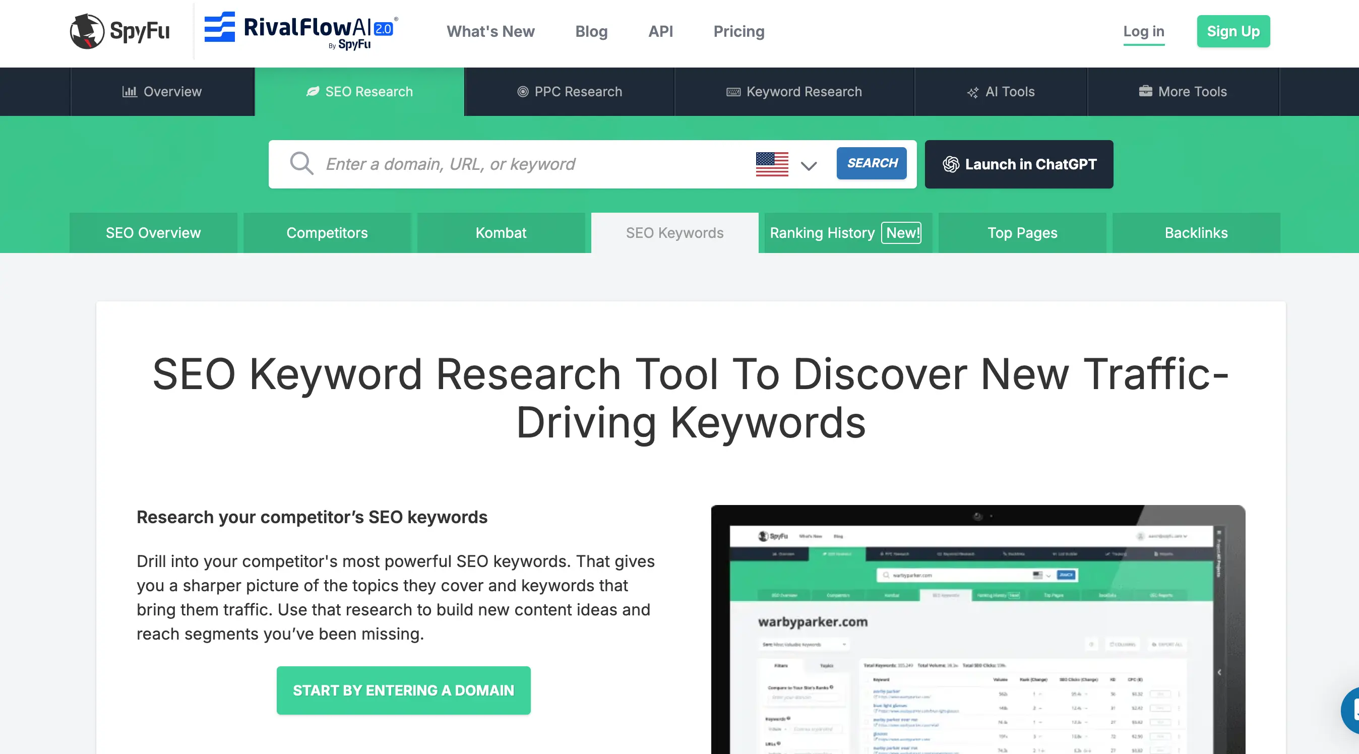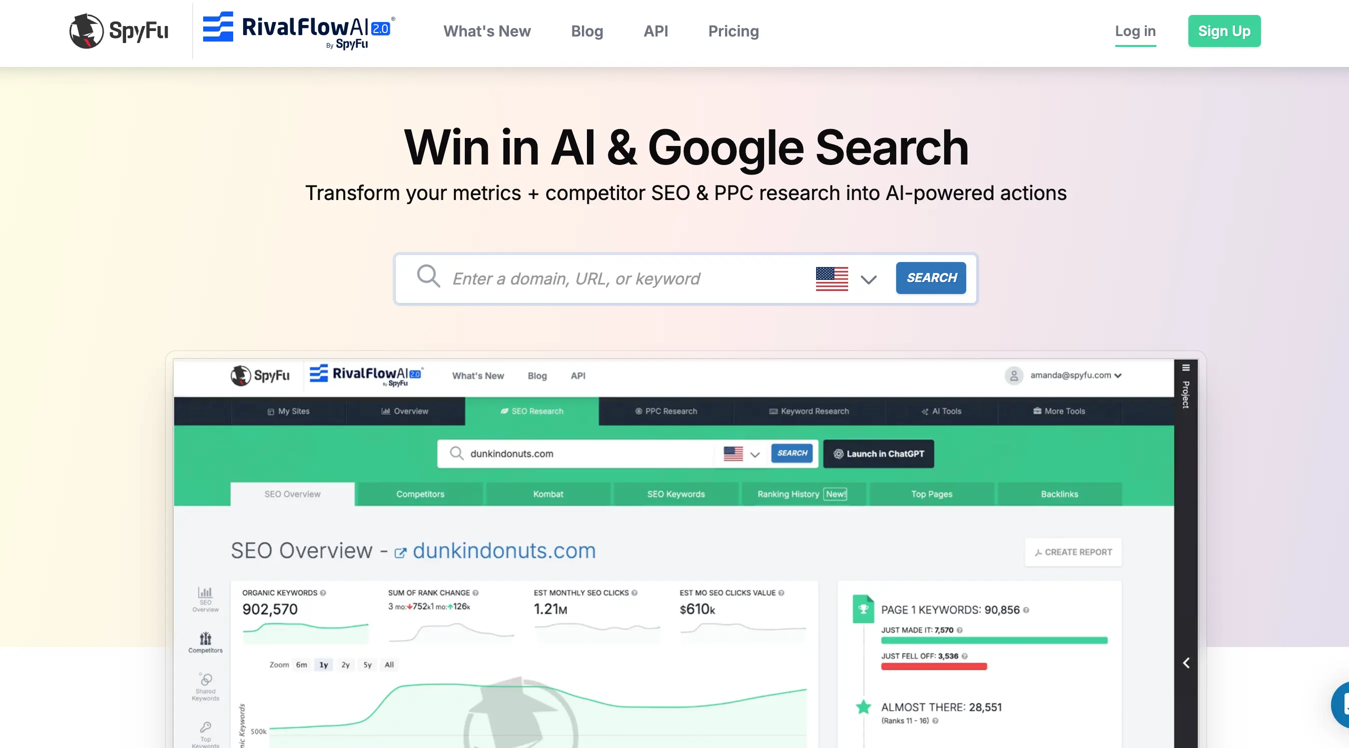 SpyFu est un outil SEO dédié à la recherche approfondie de mots-clés et à l’analyse concurrentielle. Il permet aux professionnels du référencement, aux consultants marketing et aux agences SEO de découvrir les stratégies utilisées par leurs concurrents pour mieux orienter leurs propres campagnes SEO et publicitaires. Cet outil est particulièrement précieux pour ceux qui souhaitent optimiser leur visibilité en ligne en appuyant leurs décisions sur des données concrètes et actualisées.
