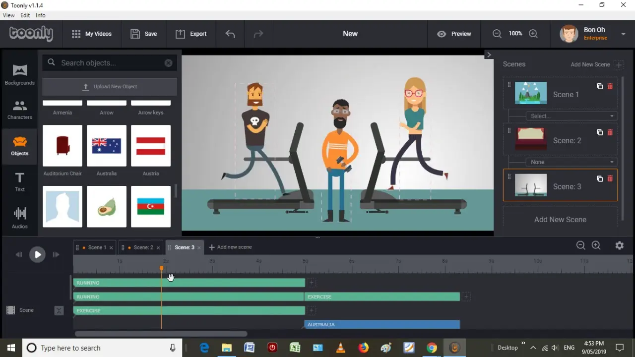 Un autre point fort de Toonly est sa bibliothèque intégrée très fournie, qui permet de gagner beaucoup de temps en évitant de chercher des éléments graphiques externes.