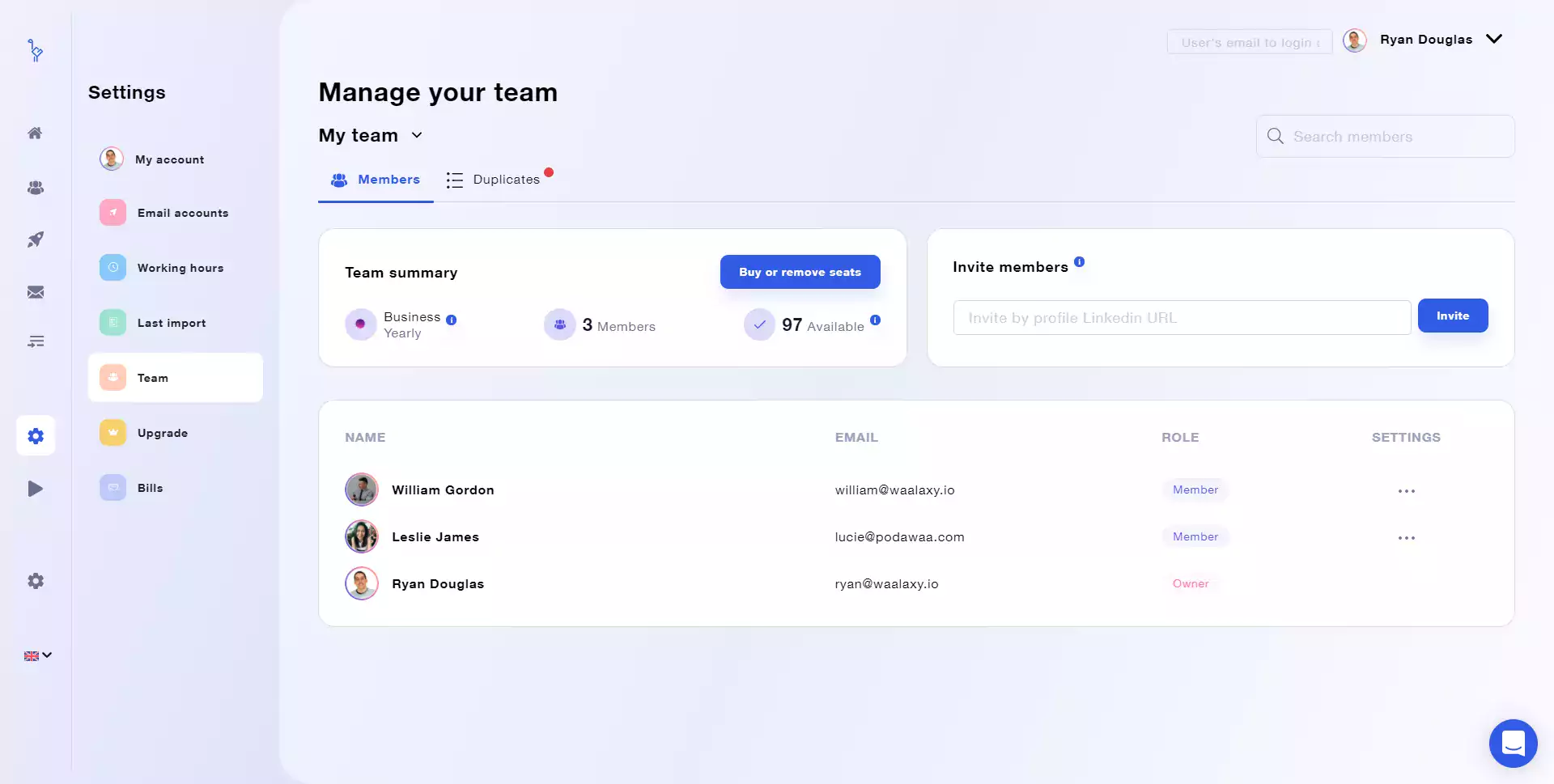 Waalaxy est compatible principalement avec LinkedIn et fonctionne via une extension Chrome qui facilite l’automatisation sans nécessiter d’installations lourdes. Il peut importer des contacts via fichiers CSV et s’intègre avec certains CRM populaires pour la synchronisation des données, facilitant ainsi l’usage dans un écosystème digital déjà en place.