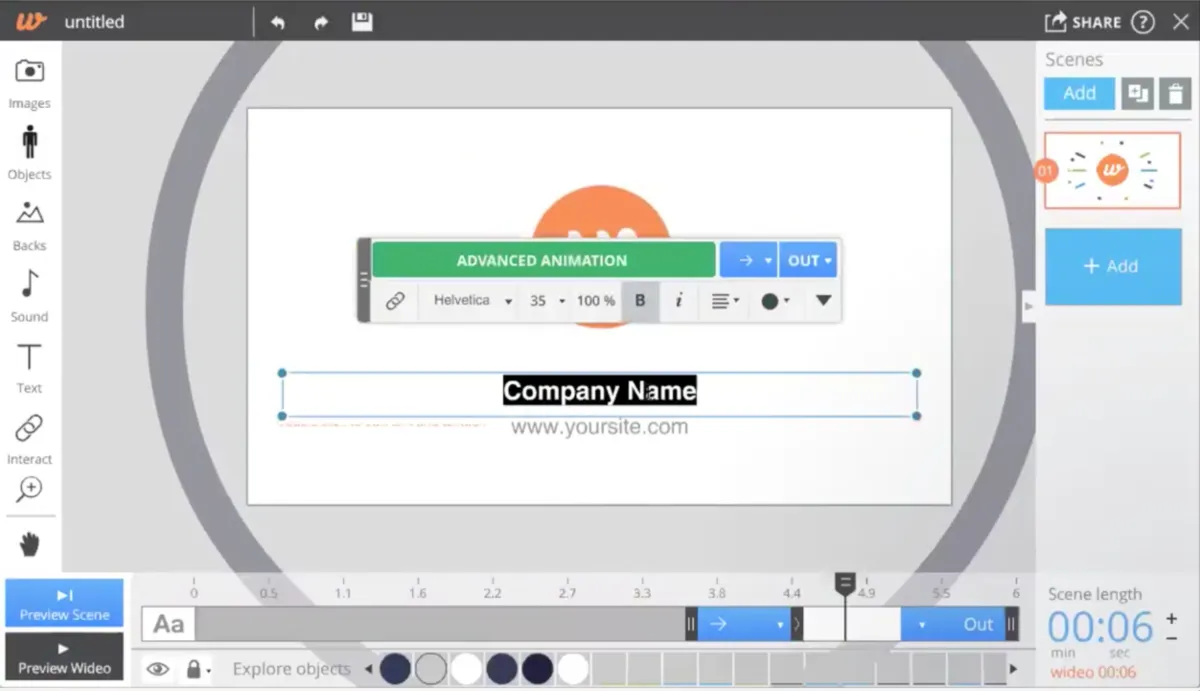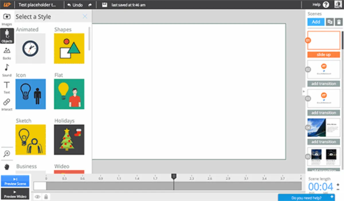 La première fonctionnalité clé de Wideo est son éditeur intuitif basé sur le principe du glisser-déposer. Cette interface facile d’utilisation permet de concevoir des vidéos animées rapidement, en combinant textes, images, formes et sons. C’est un outil parfait pour créer des vidéos explicatives, des publicités animées ou des présentations dynamiques.
